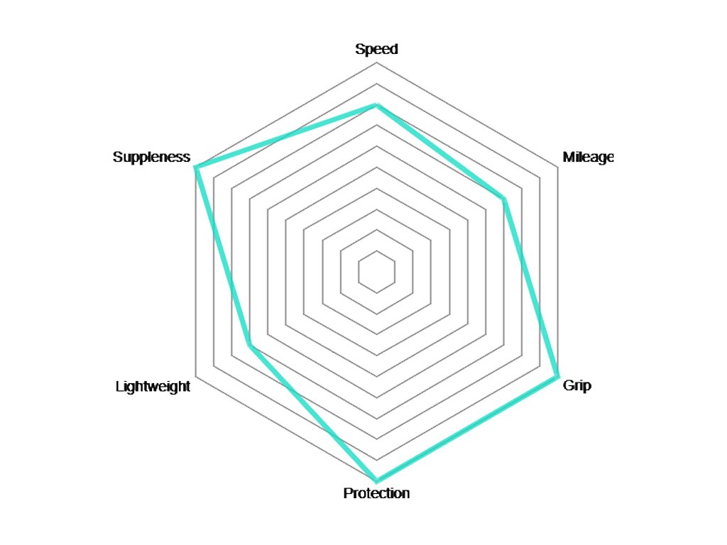 - 4 mieszanki bieżnika (4C) : zapewniają dłuższą żywotność, mniejsze opory toczenia i lepszą przyczepność ścian bocznych.
